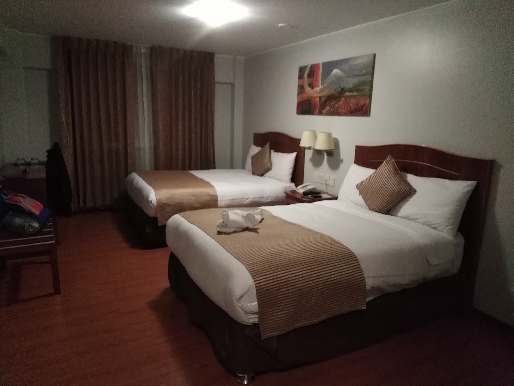 El hotel es muy bonito está cerca del centro de la ciudad ahí comparto algunas fotos del interior en cuanto al costo no los puedo ayudar pues lo pago la empresa, tiene menú al cuarto y los precios oscilan entre 30 y 35 soles, solo hasta las 09:00 pm, cerca de este hotel están varios restaurantes y plaza de armas de la ciudad y a 20 min del aeropuerto, RECOMENDABLE