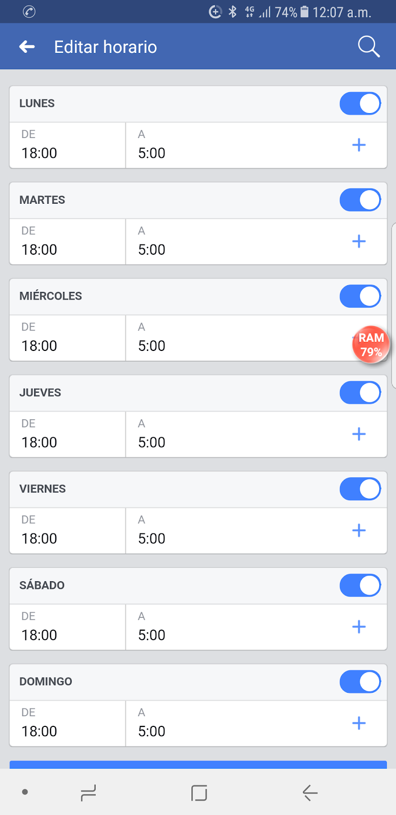 | Lunes | Abierto 24 horas |