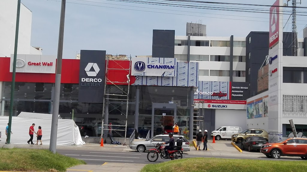 Concesionario Derco. Es un local de la cadena Derco dirigido a la marca Suzuki, concesionario adelante y taller de solo mantenimiento básico, en la parte posterior, esto quiere decir que no hacen todas las reparaciones mayores, ni planchado ni pibtura. Atención muy buena, previa cita y tienen cupos limitados por día. En este año 2018, el local cambió la marca. La tienda ya no vende Suzuki, esta se mudó a tres cuadras en Faucett. Ahora venden Changan y Great Wall. Pero el taller sigue siendo Suzuki, aparte de las marcas nuevas. El trabajo es de calidad y garantia, con repuestos originales.