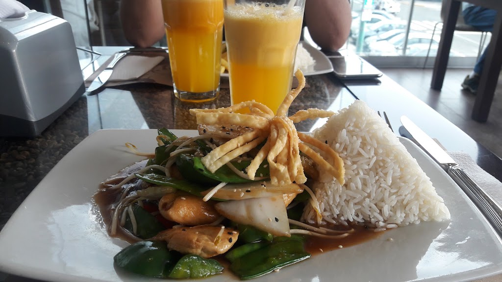 Slightly upscale cafe with a large menu, fair prices. They have hamburgers and pizza but a lot of peruvian dishes and desserts too.