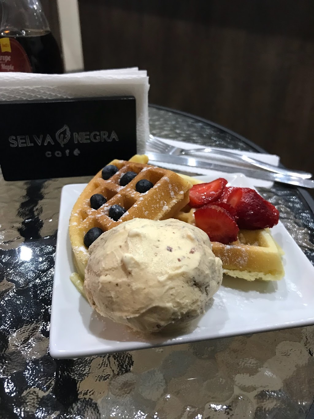 Me fascinó el waffle selva negra, delicioso, el té de frutos rojos es algo de otro mundo ??. La atención muy buena
