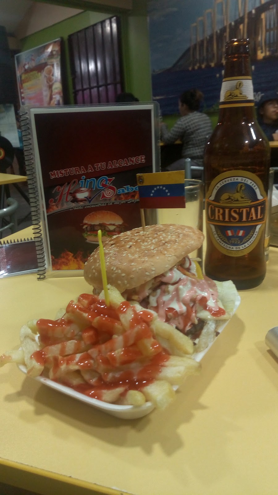Hola en primer lugar hice un cambio en mi vida yo antes vivía en villa salvador pero el 1de setiembre hice un cambio me mudé por los jardines osea ahora viviré por ahí y ese día llegaron mis amigas para inaugurar mi mudanza y llegamos a la polleria y compramos para llevar la verdad si estuvo rico papas crocante y cremas al gusto del cliente si lo doy visto bueno como le dije es la primera vez que como hay ya veremos más adelante.