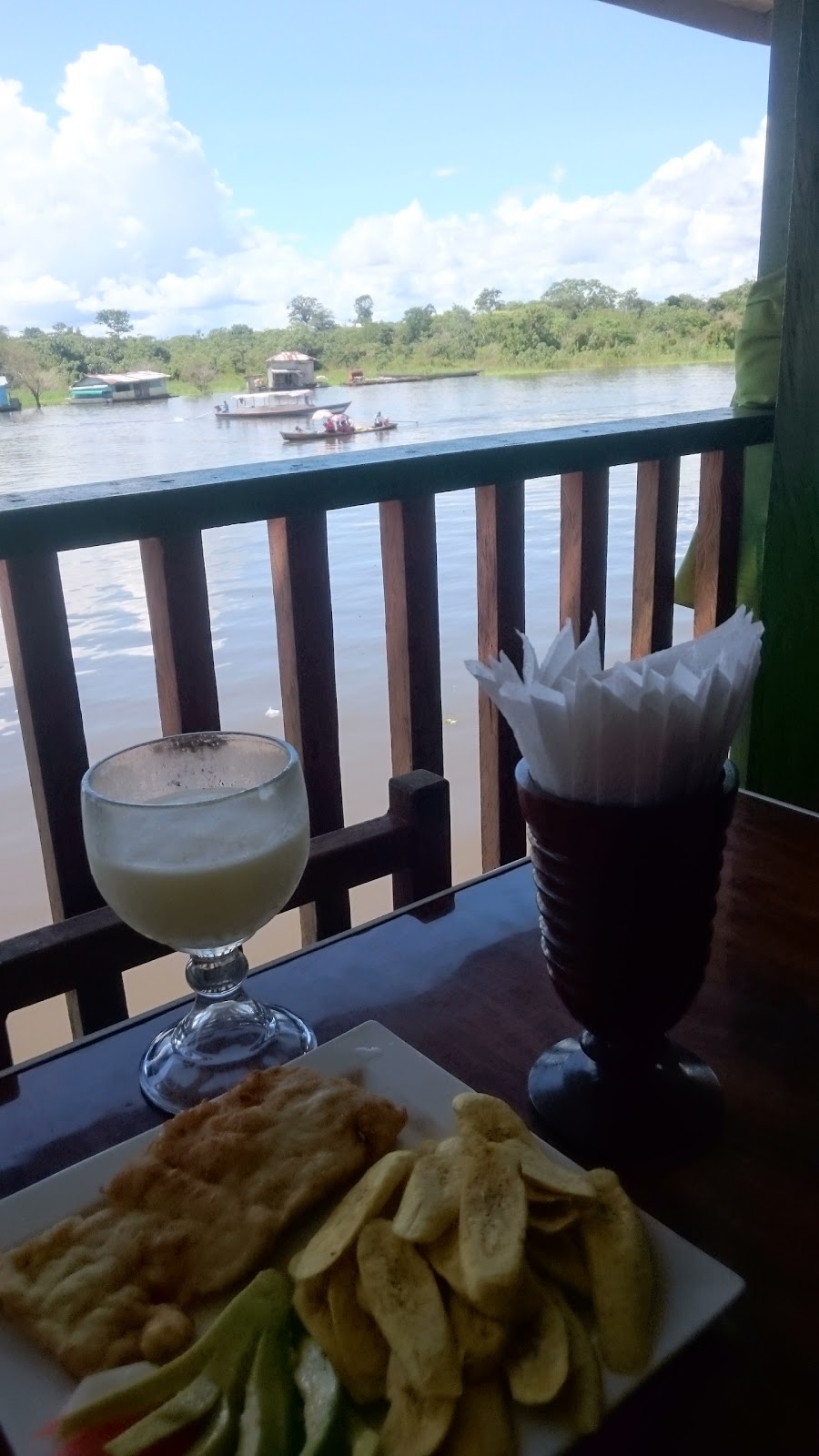 El ruido es insoportable, los servicios sanitarios pésimos, ponen un televisor con las noticias y de fondo cumbia a muy muy alto volumen que no deja escuchar la tv. Cocinan bien en relación a otros sitios en Caballococha, lo mejor de este sitio y la razón de ponerle 3 estrellas es que tiene una especie de balcon con vista al río, siempre que almorcé aquí aviste delfines, además se puede ver la rutina del puerto y nativos... Se. Pueden sacar buenas fotos mientras se almuerza.